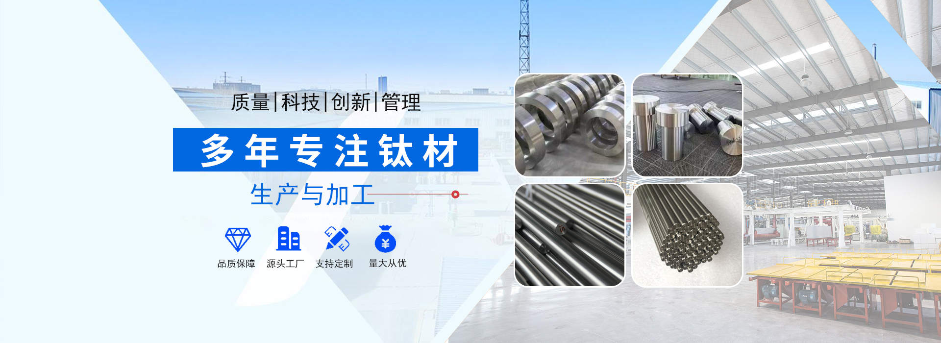 陜西辰軒鑫達(dá)金屬材料有限公司位于具有“中國鈦城”之稱的陜西寶雞高新技術(shù)開發(fā)區(qū),公司依托“中國鈦城”的雄厚的行業(yè)資源,強大的有色金屬科研及制造實力,完整的有色金屬工業(yè)制造產(chǎn)業(yè)鏈,形成了一套完整的生產(chǎn)流程,公司主要從事有色金屬的加工,生產(chǎn)及銷售及工業(yè)及民用鈦、鎳、鉬及其他稀貴金屬材料的深加工研究生產(chǎn)及國際、國內(nèi)貿(mào)易,集有色金屬材料銷售、產(chǎn)品設(shè)備制造及新產(chǎn)品開發(fā)為一體。主要以生產(chǎn)鈦材及其他金屬材料為主,主導(dǎo)產(chǎn)品有:鈦錠、鈦棒、鈦絲、鈦板、鈦法蘭等以及其他有色金屬材料:鋯板、鋯管、鋯棒、鋯鈀、鋯餅、鈮管、鈮棒、鉭板、鉭棒、鉭管等有色金屬。產(chǎn)品廣泛應(yīng)用于化工、冶金、石油、紡織、醫(yī)藥、輕工、環(huán)保···